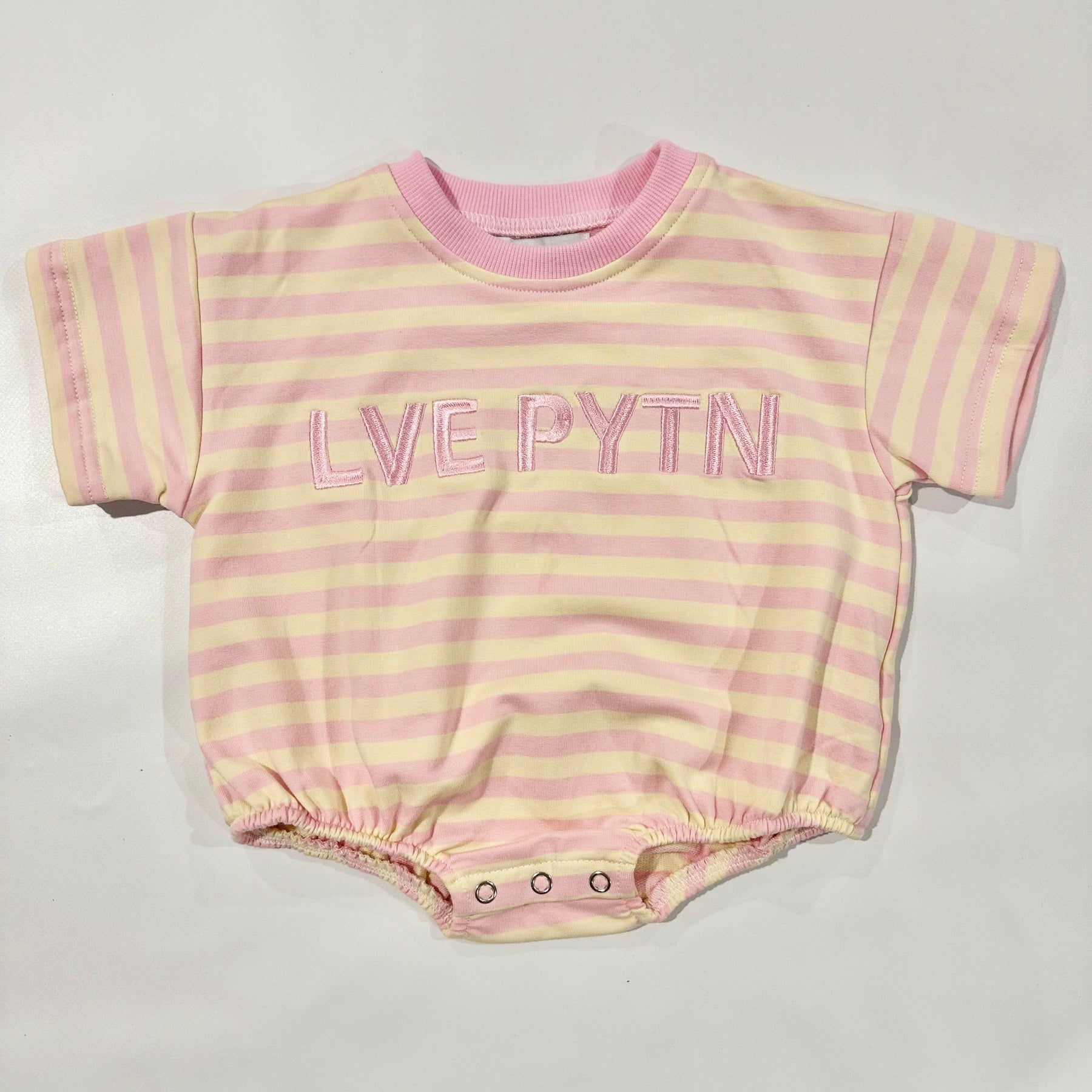 The relaxed, oversized fit allows for easy movement and all day comfort, while the playful pink and cream stripes add a timeless summer charm.